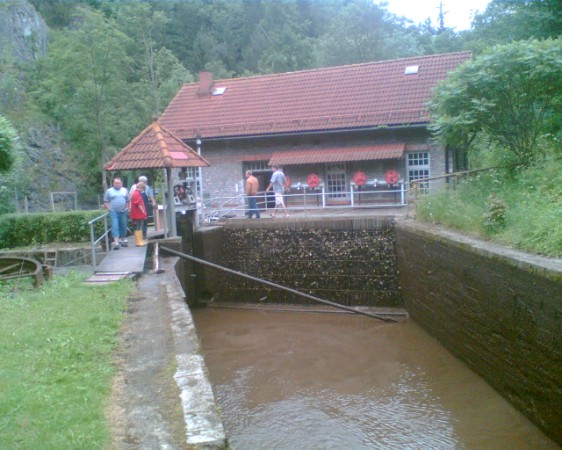 Nachdem das Wasser durch einen aus Natursteinen gemauerten Graben (teilweise auch durch einen Stollen) geflossen ist, wird es unmittelbar vorm Kraftwerk beruhigt. Zweck ist, dass das Wasser mit einer gleichmäßigen langsamen Strömung durch die Turbine fliest.